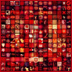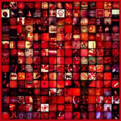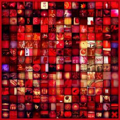 Collection inutile de mauvaises photographies d'objets ou d'ambiances rouges, sur plusieurs années. Recomposé en 3 panneaux de 50 X 50 cm.